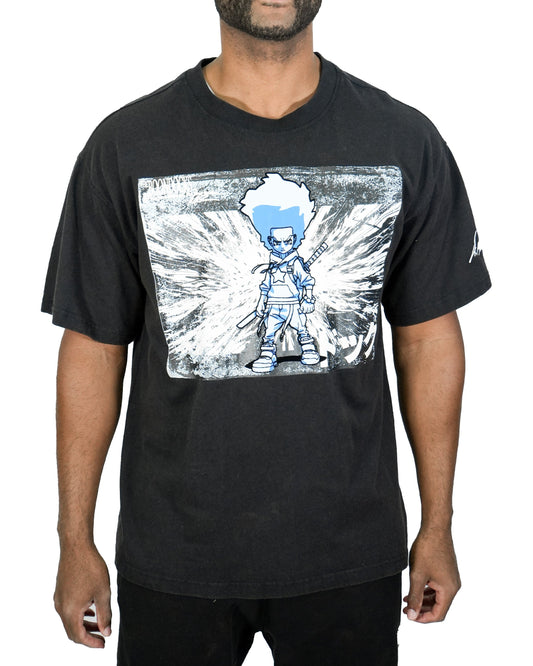 The Boondocks Huey Samurai Warrior Oversized Black Acid Wash T-Shirt