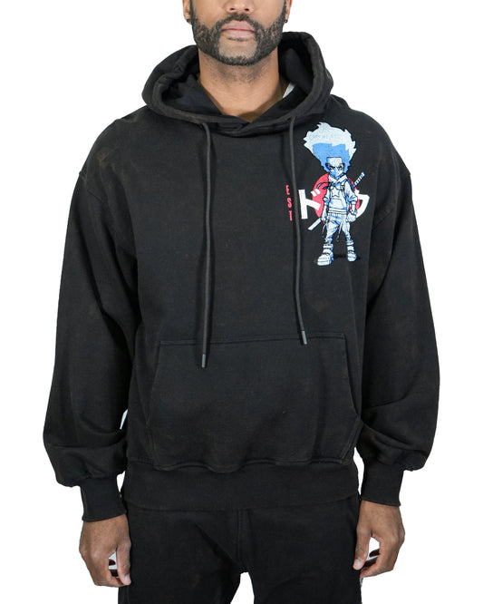 The Boondocks Huey Samurai Warrior Oversized Black Acid Wash Hoodie