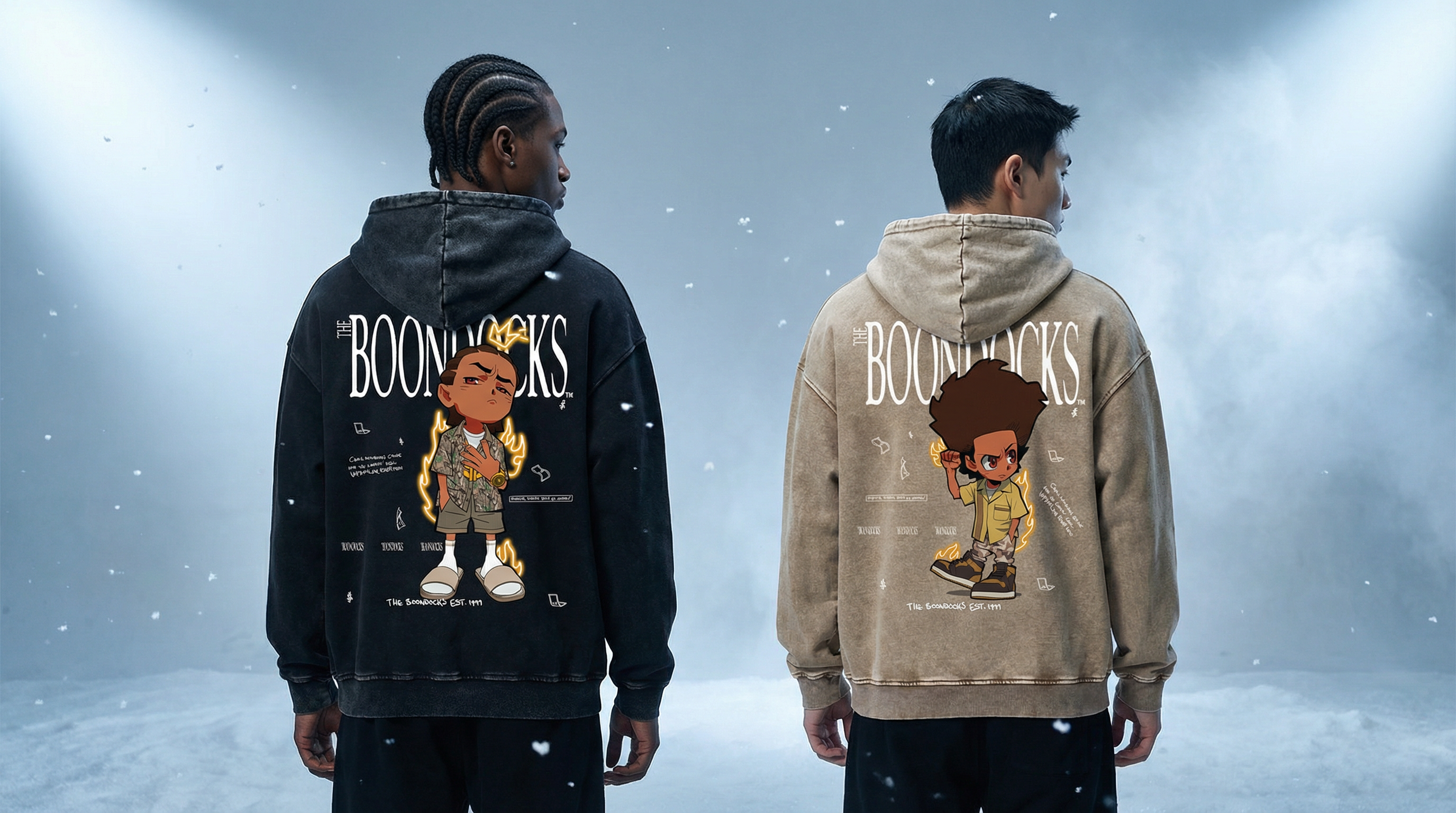 Embrace The Boondocks vibe with our elevated products—a fusion of quality, durability, and the rebellious spirit inspired by the iconic show. From intricate embroidery to edgy appliqué techniques and standout prints, our designs capture the essence of The Boondocks, making your outfit a daily expression of unapologetic style.