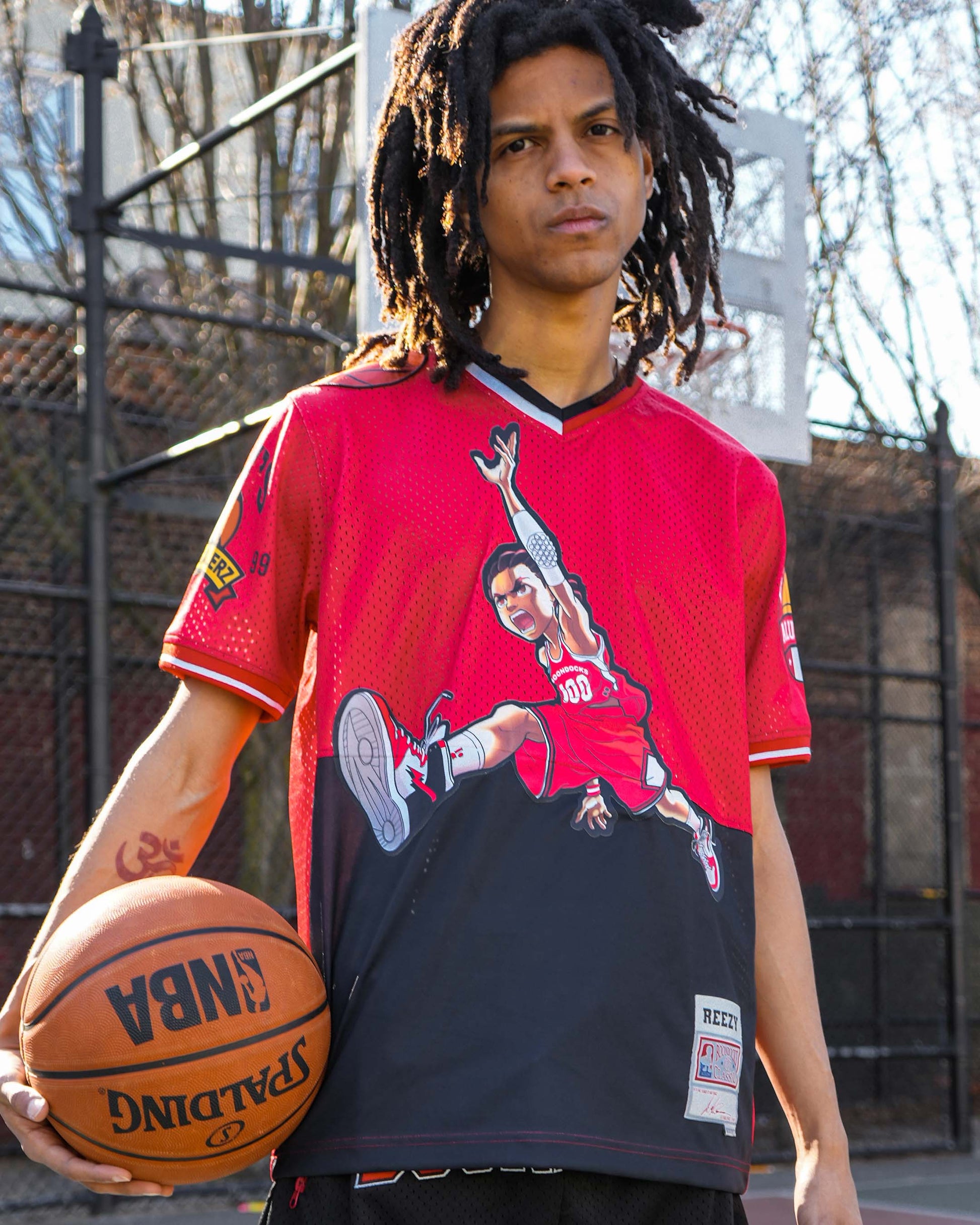 Our Collaboration Continues With Aaron McGruder's "The Boondocks" For Spring 2023. This Custom Knit Mesh T-Shirt Features Air Riley Going For The W!