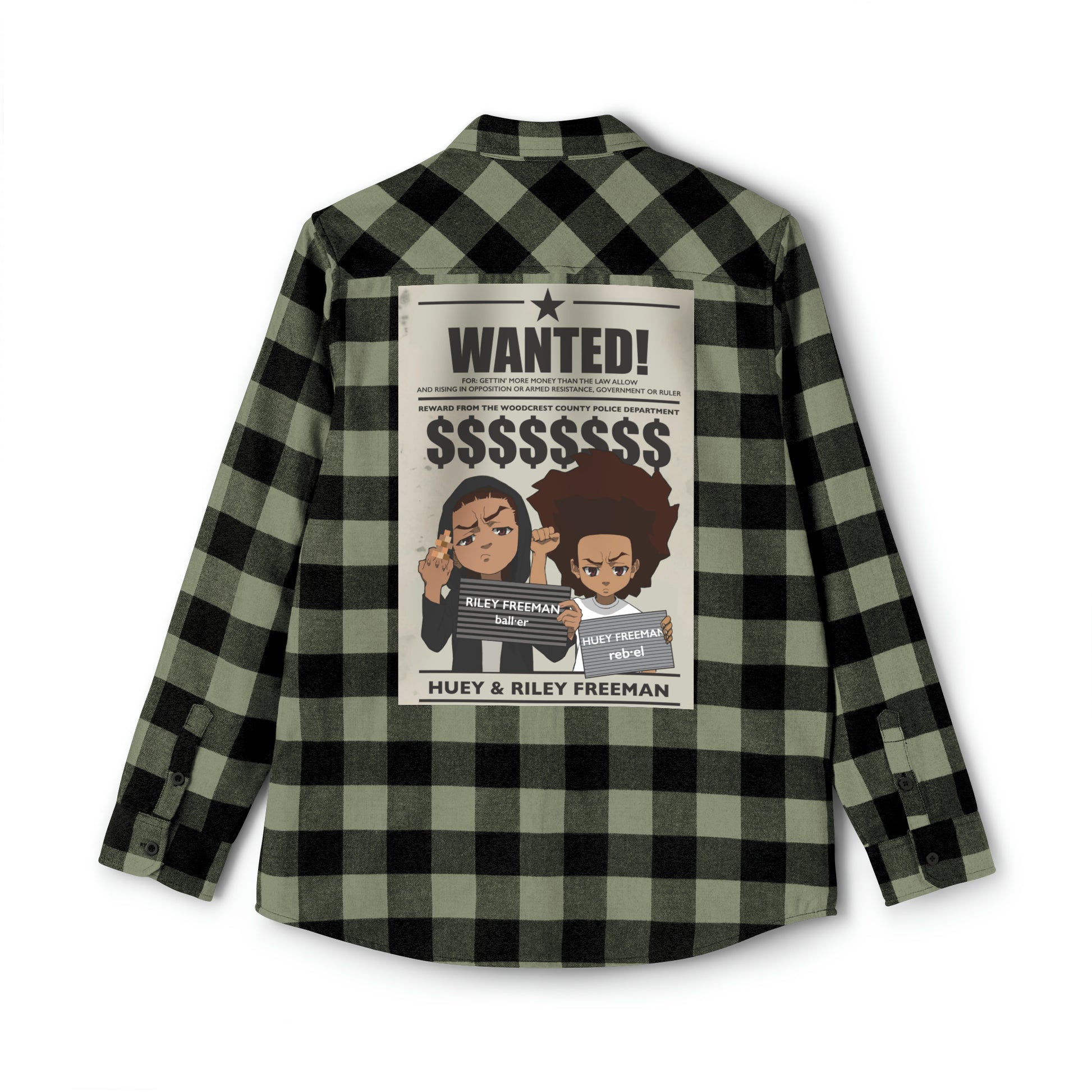 Embody the rebel spirit of Huey and Riley Freeman with our "Wanted" Flannel Shirt. Made for those who stand out, this shirt blends comfort with the boldness of the Freeman brothers. Whether you're fighting the system or just chilling, this flannel is your badge of honor.