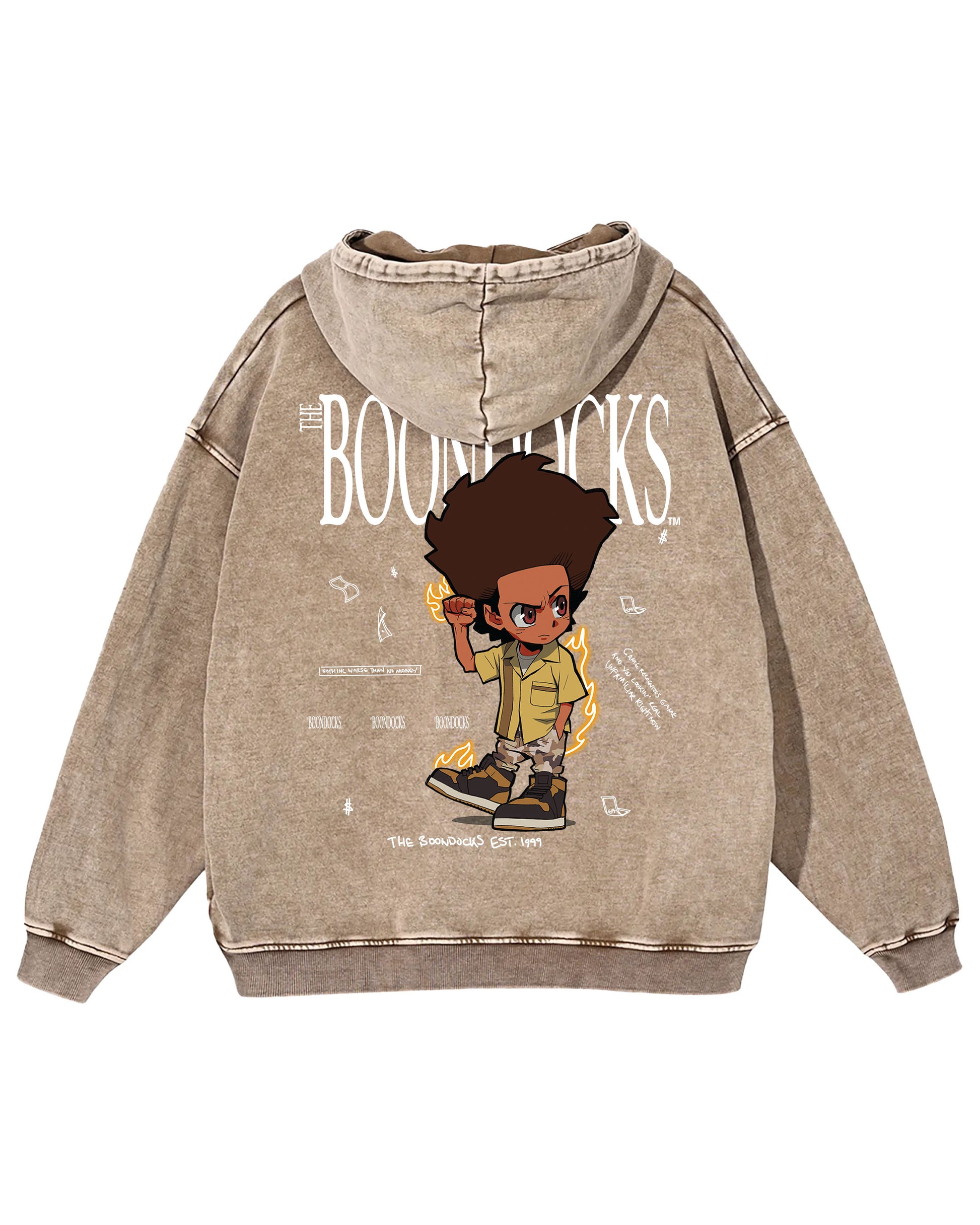 The Boondocks - Huey Khaled Acid Wash Oversize Brown Heavyweight Hoodie