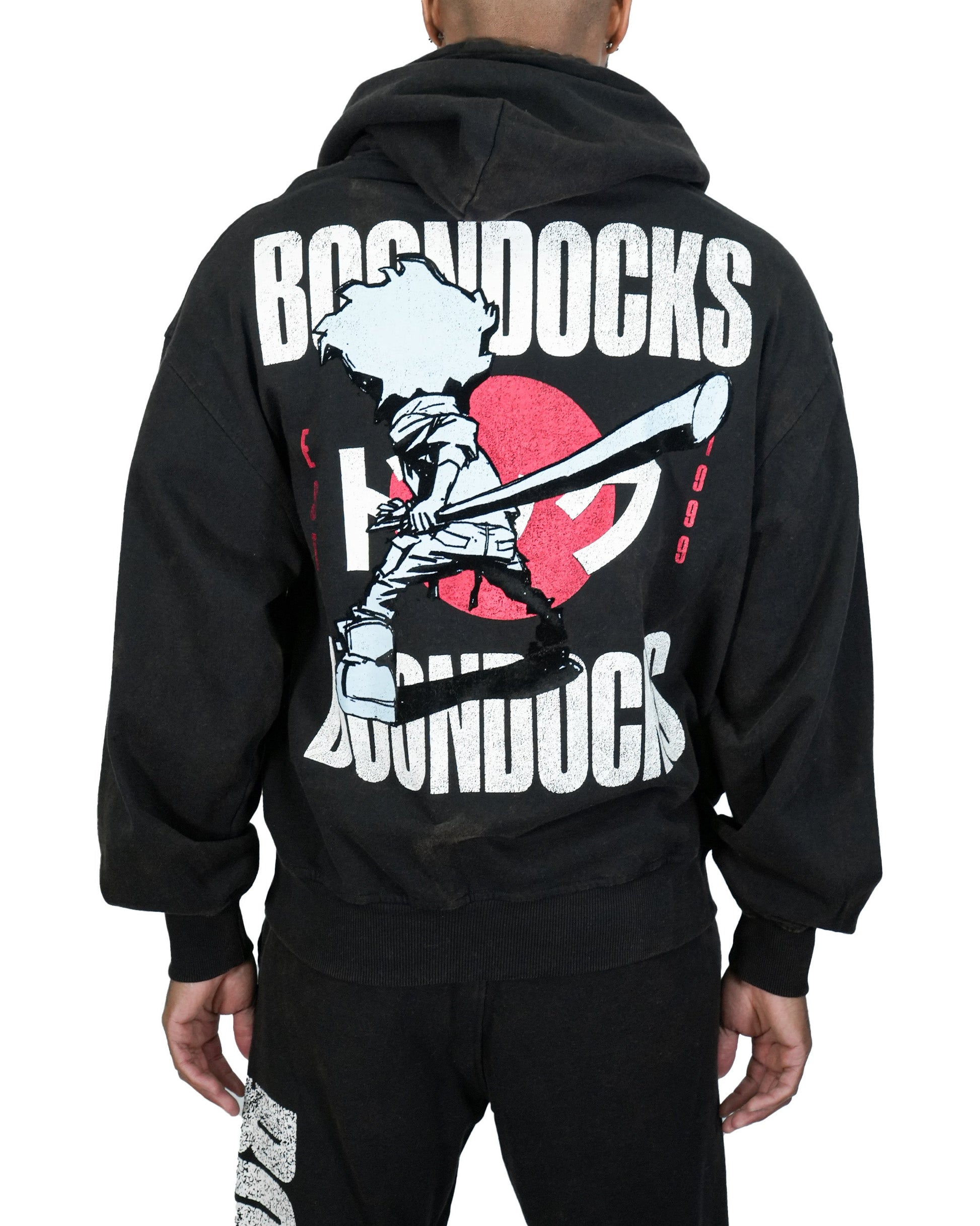 The Boondocks Huey Samurai Warrior Oversized Black Acid Wash Hoodie