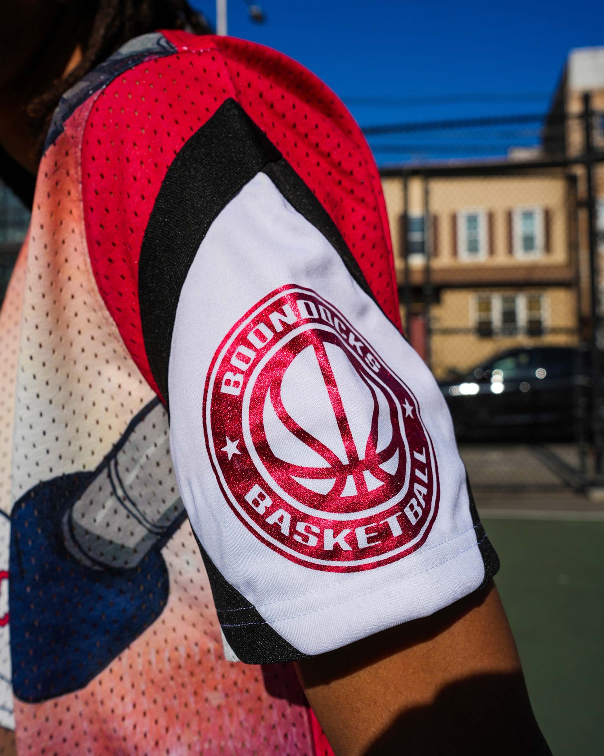 Our Collaboration Continues With Aaron McGruder's "The Boondocks" For Spring 2023. This Custom Knit Mesh T-Shirt Features Riley Post Game Interview!